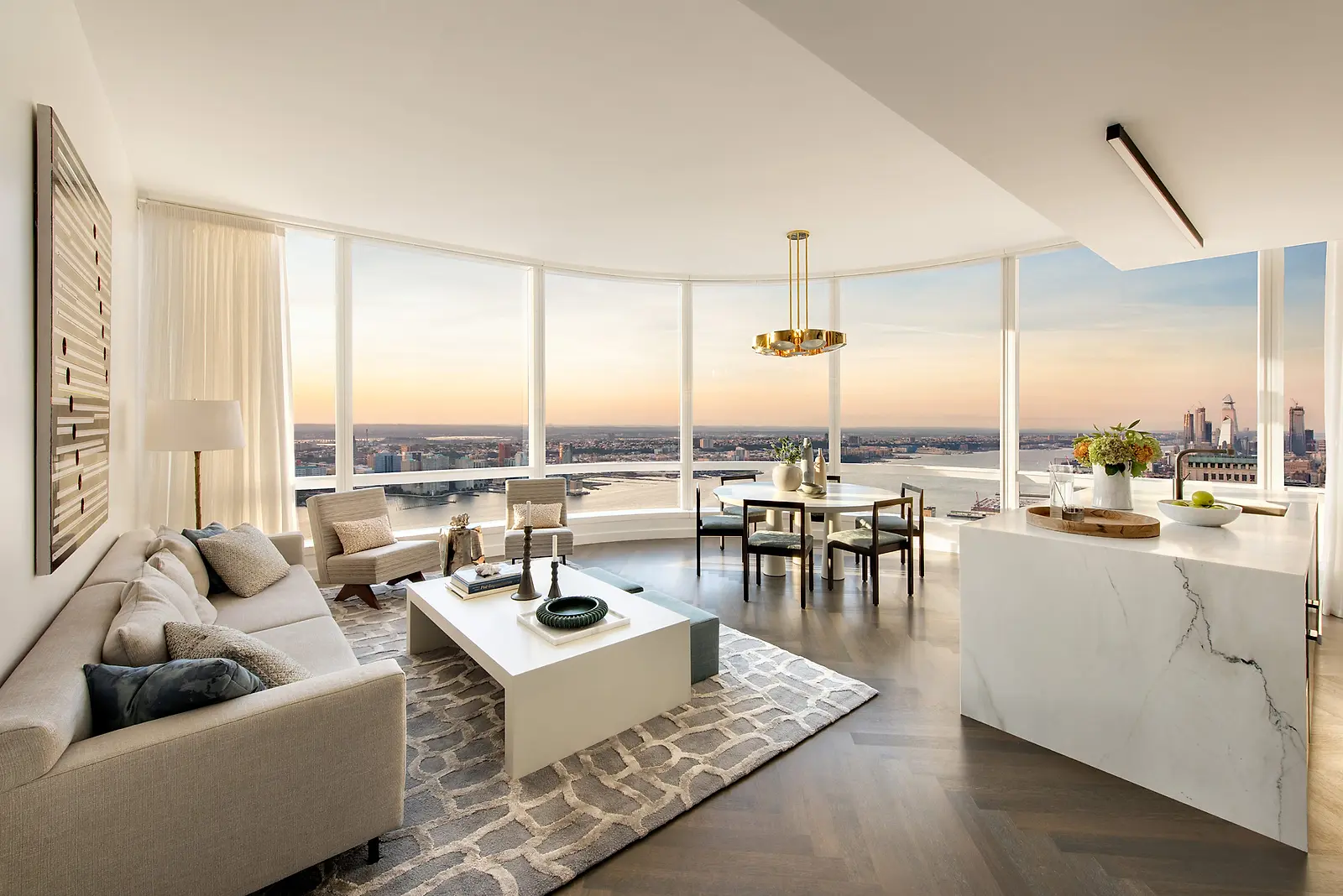 The 59-story tower rises to nearly 800 feet, with a distinctively curved silhouette and glassy exterior inspired by the tailored lines of the fashion industry and Italian glass vessels. Its gentle outward flare, which begins at the building’s 40th floor and rises to a sculpted crown, also provides more floor area above neighboring buildings and secures unobstructed views from the upper floors.