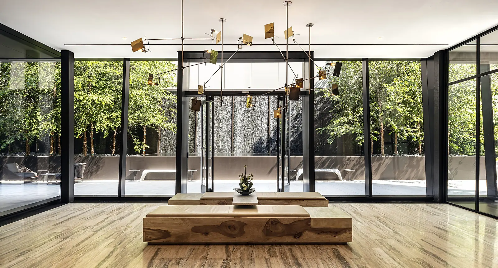 Furthermore, the entry’s canopy and softly curving form establish a point of arrival and a front door with a residential character. Residents enter through this double-height lobby to the building’s lavish spaces, ranging from a Turkish bath to a dining room with a private garden and fifteen foot waterfall. Private elevator vestibules service the top seventy apartments, with shared vestibules for two to four apartments per floor. These elements maintain both community and privacy for an innovative, luxury residential experience.